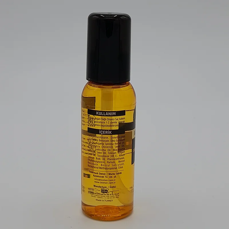 روغن آرگان بایوهیر ترکیبی صد درصد خالص از روغن آرگان مراکشی و پرو ویتامین است که باعث تغذیه و تقویت کامل ساقه مو میشود ، به دنبال آن شفافیت و درخشان شدن مو را در پی دارد.مزایای روغن آرگان که روغنی بسیار نادر است ،به عنوان راز زیبایی برملا شده ، بر همگان مبرهن است، این روغن طلایی و جادویی توانسته با فرمول خدادادی خود باعث سلامت و تغذیه کامل پوست و مو گردد. بافت بسیار سبک روغن آرگان بایوهیر باعث می شود سلامتی وشادابی از دست رفته به موهای شما باز گردد و آسیبهای متحمل شده مانند رنگ مو، دکلره، فر و یا صاف کردن مو،اثرات سوءِ بارداری و زایمان طبیعی و… از چهره مو زدوده شود و موهایی چون ابریشم را به ارمغان می آورد. استفادهی طولانی مدت از روغن آرگان باعث سلامت مو و از بین رفتن وزی و موخوره میشود.